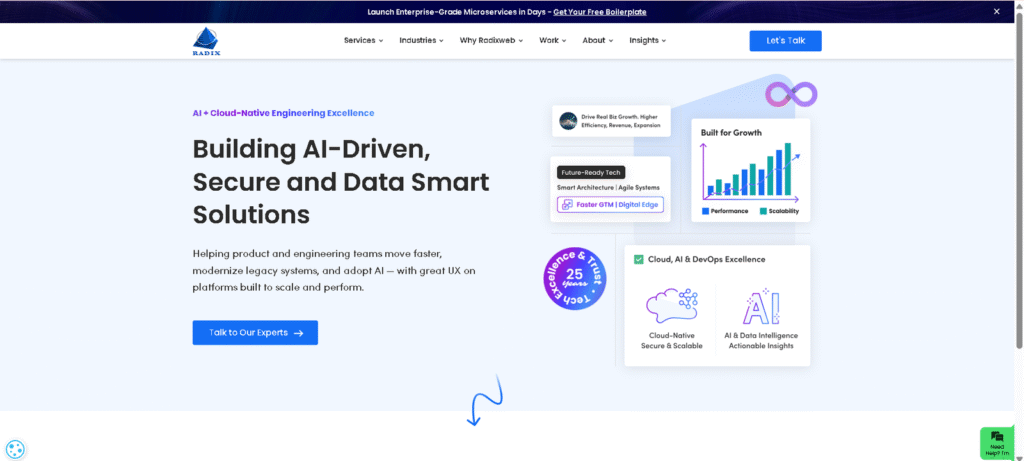 Radixweb is a AI-First Software Development and Product Engineering having about 97% rate of repeat clients. It is particularly known for its architectural excellence, AI integration and delivery of measurable ROI.